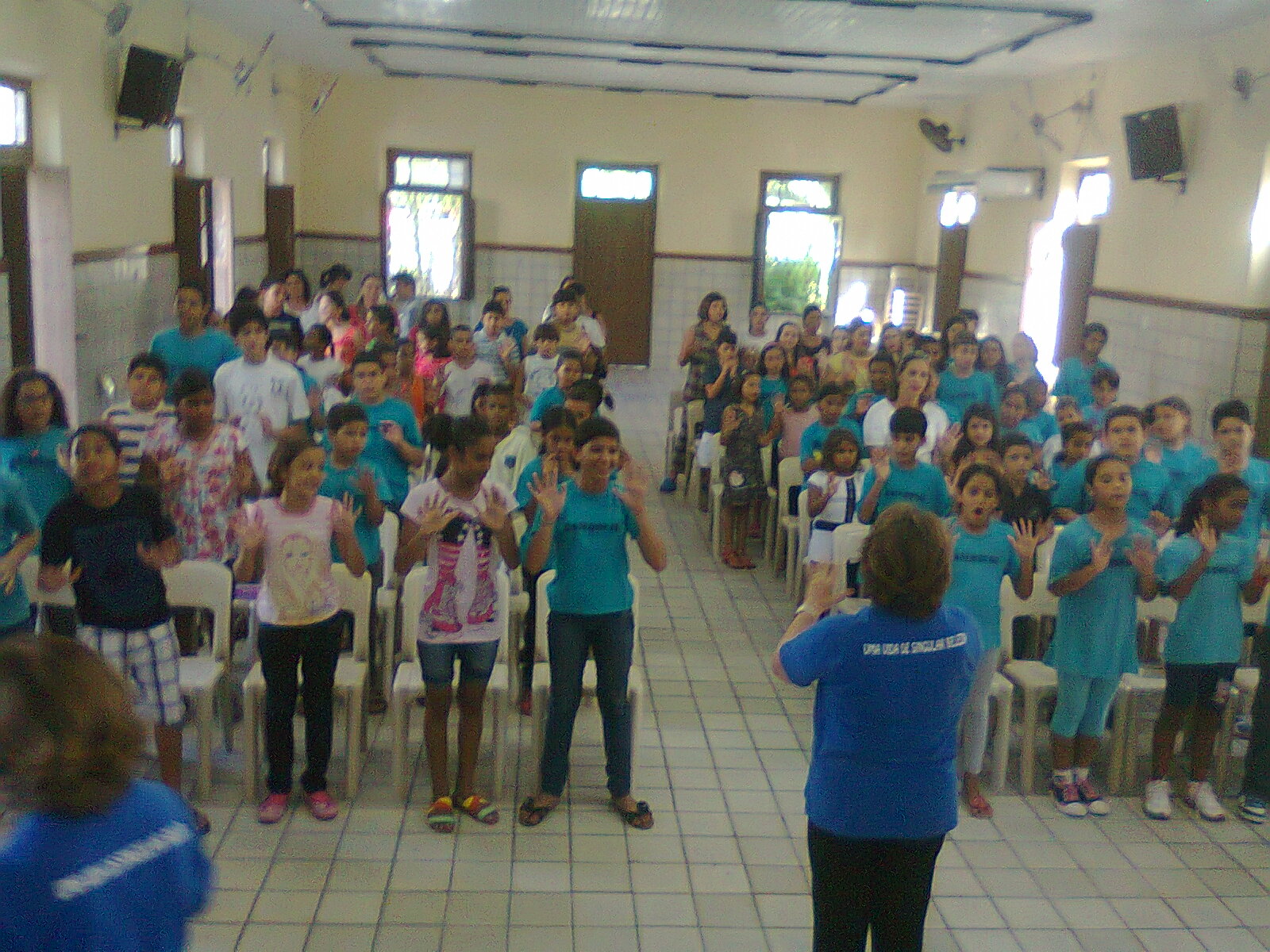 Após o encontro no salão paroquial, todos juntos seguimos para a Igreja,pois a Missa com Crianças faz parte do encontro.